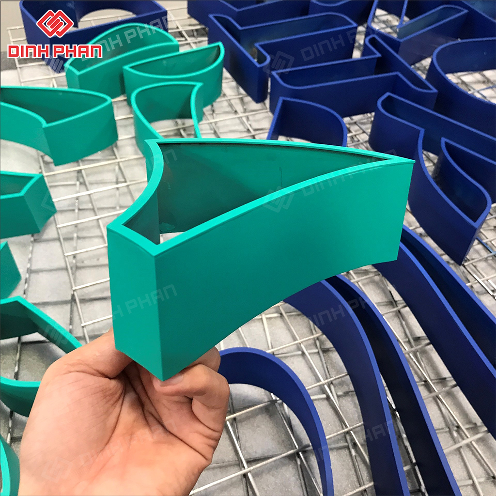 + Bước kế tiếp chữ được kiểm tra chất lượng lớp sơn lót, sau khi đạt mới tiến hành sơn phủ màu sắc theo yêu cầu. Màu sơn được pha bằng máy tính nên có thể đạt độ chính xác đến 99%.